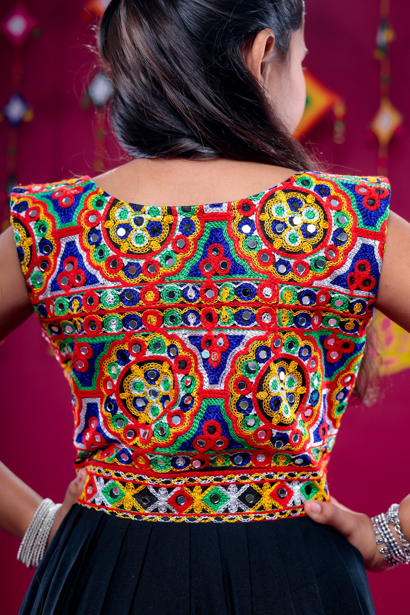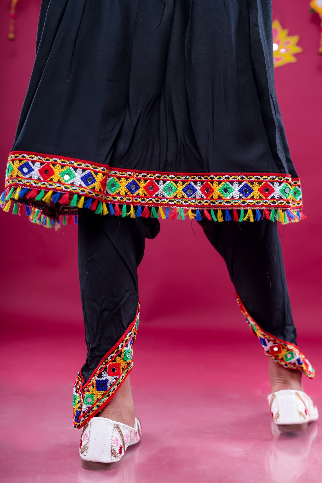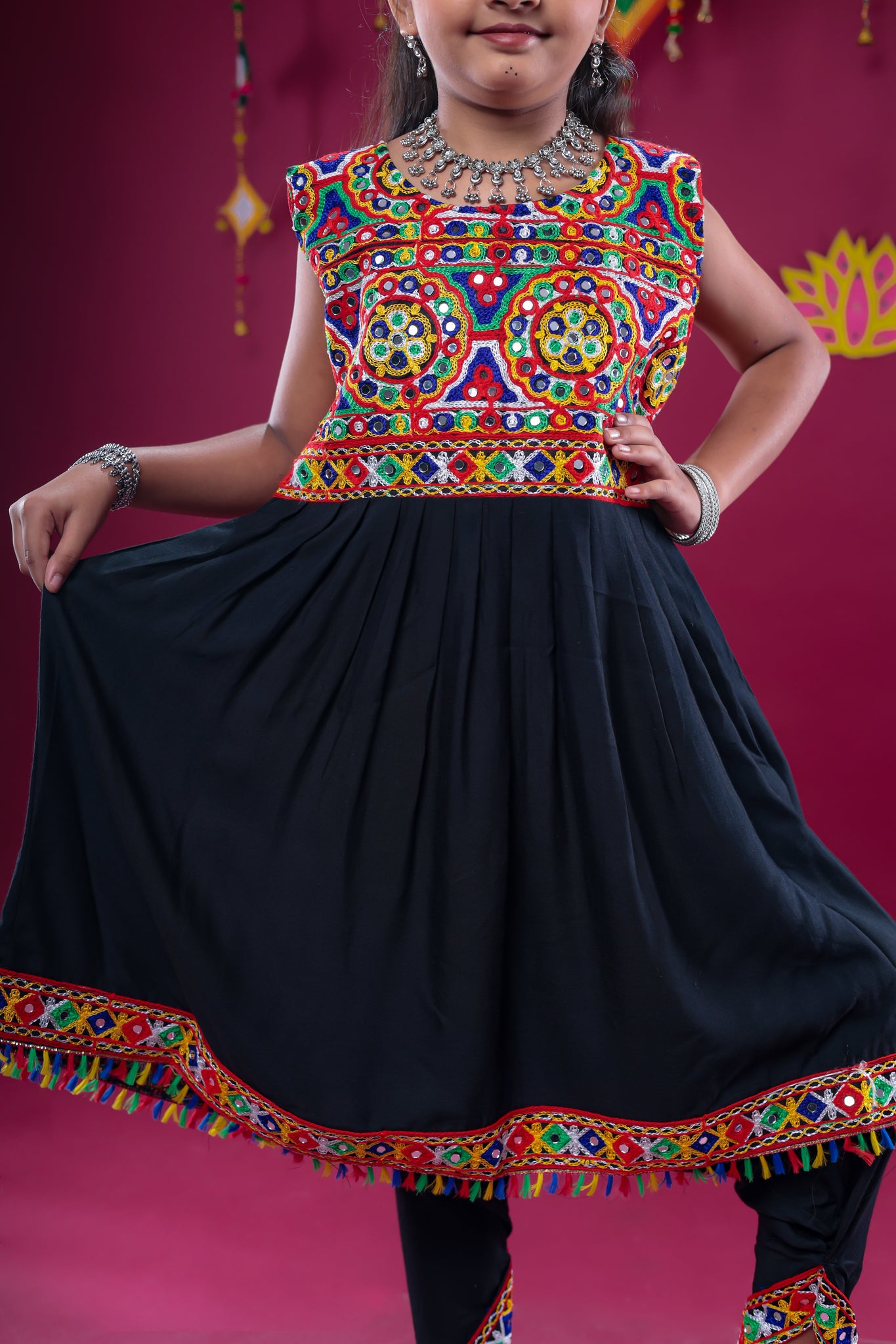 The Banjara India Kutchi Emboidered Girls Dhoti Set (DHT-222) - Black is the yin, to your yang. You've found what you're looking for.