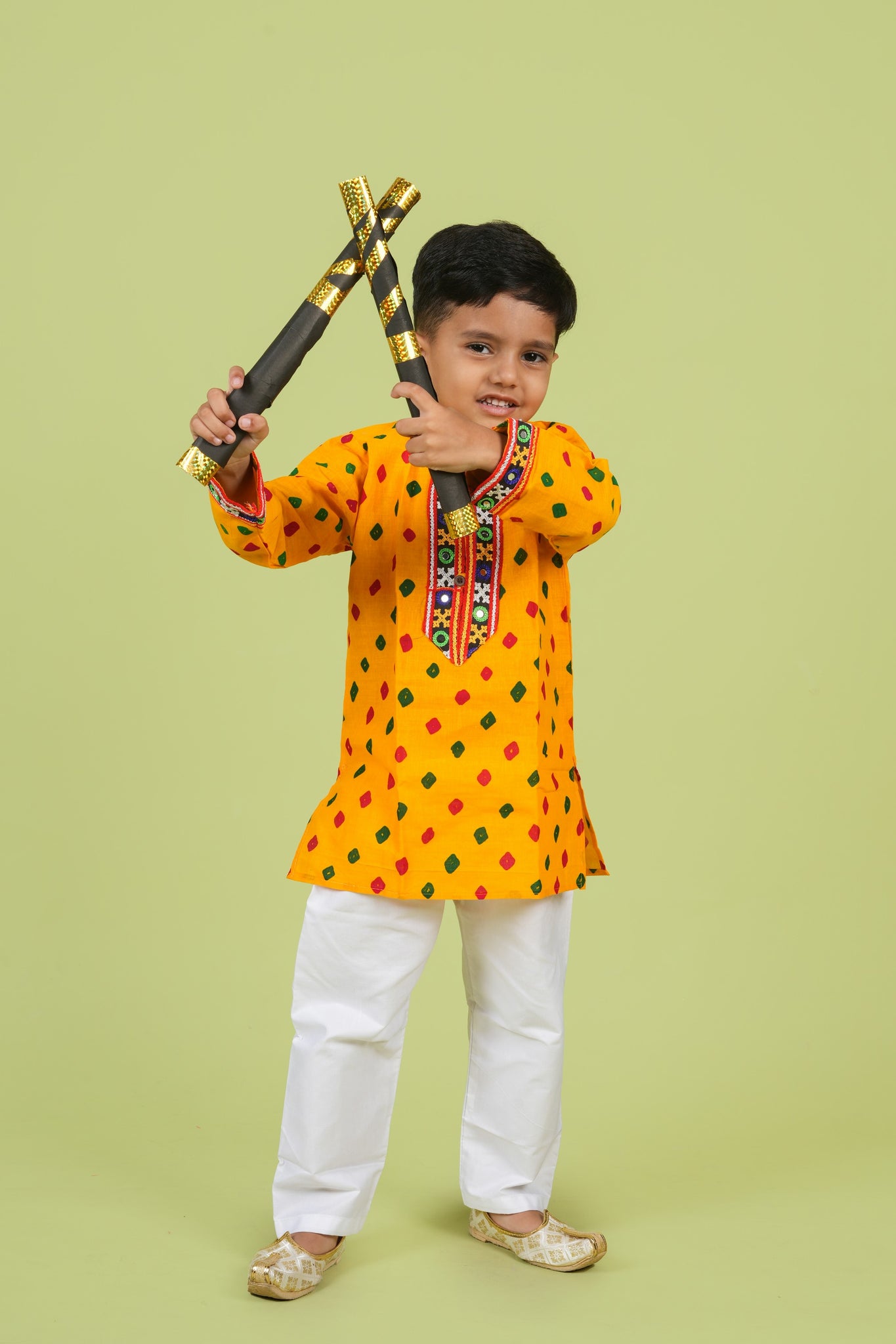 Banjara India Leheriya printed Kurta Set- KP-BDN-Yellow