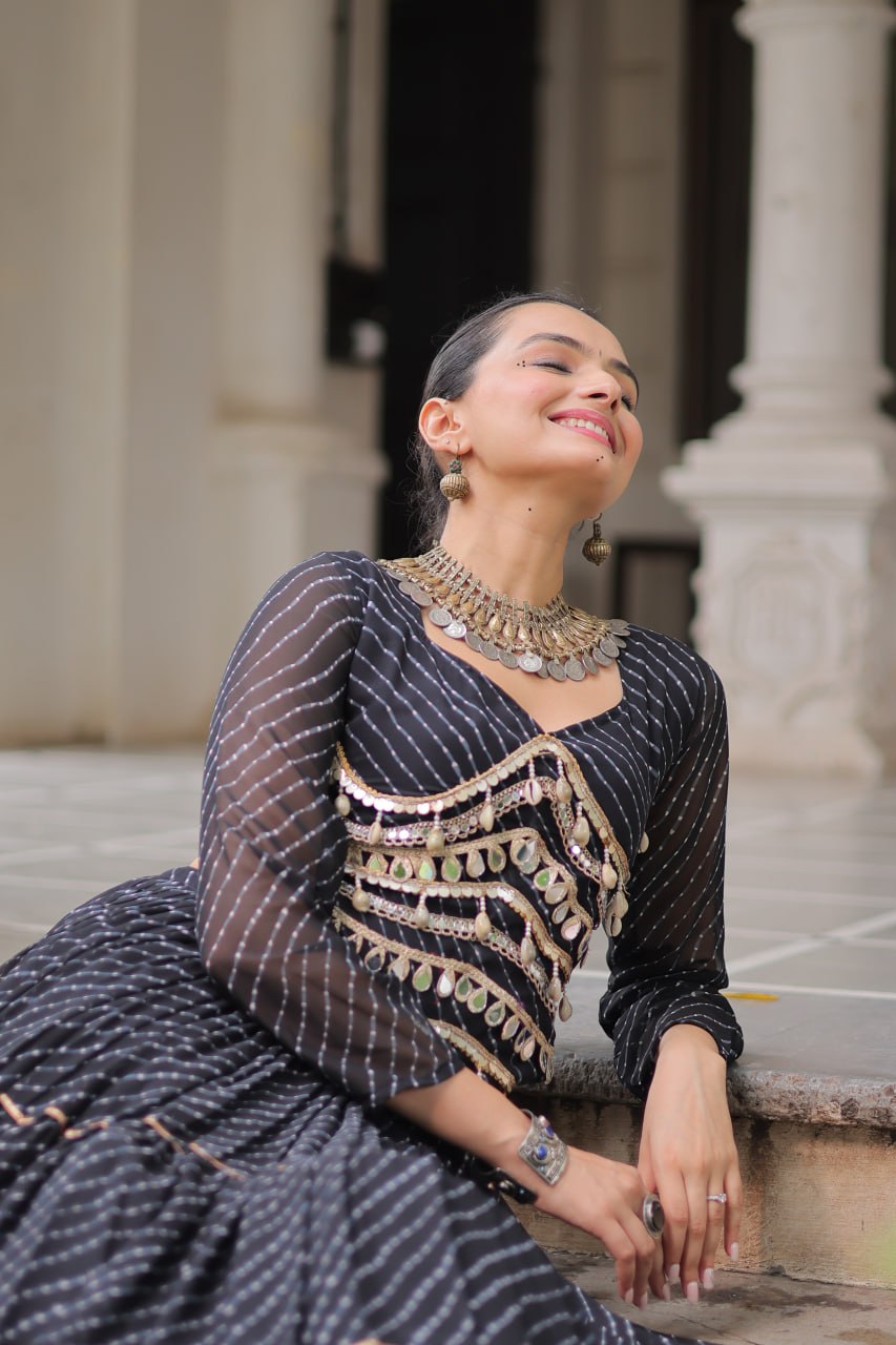 The Banjara India Long Flair Lehenga Choli Set- Black is the yin, to your yang. You've found what you're looking for.