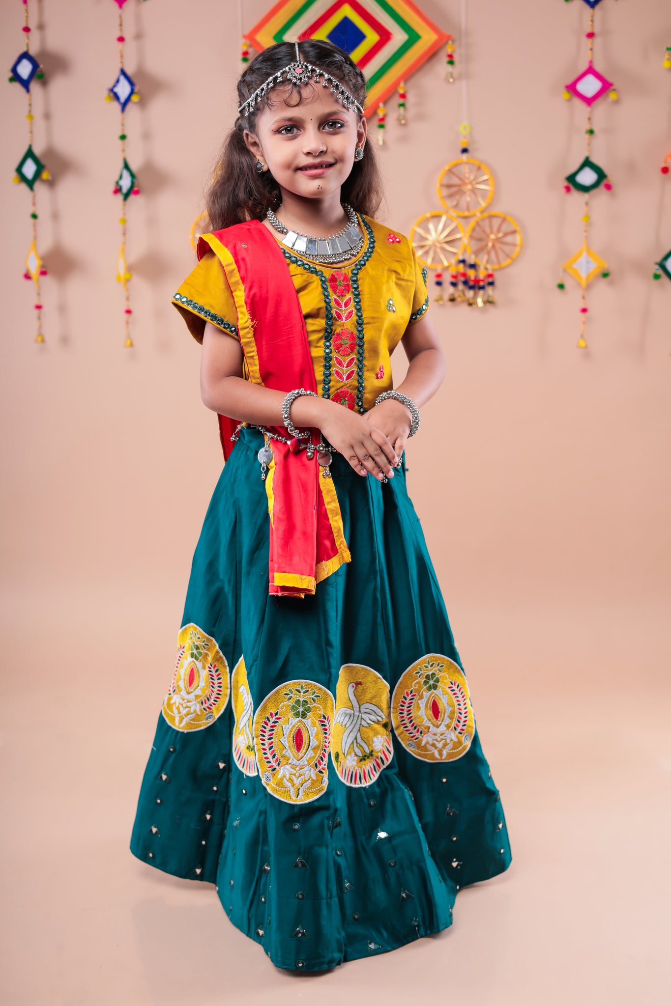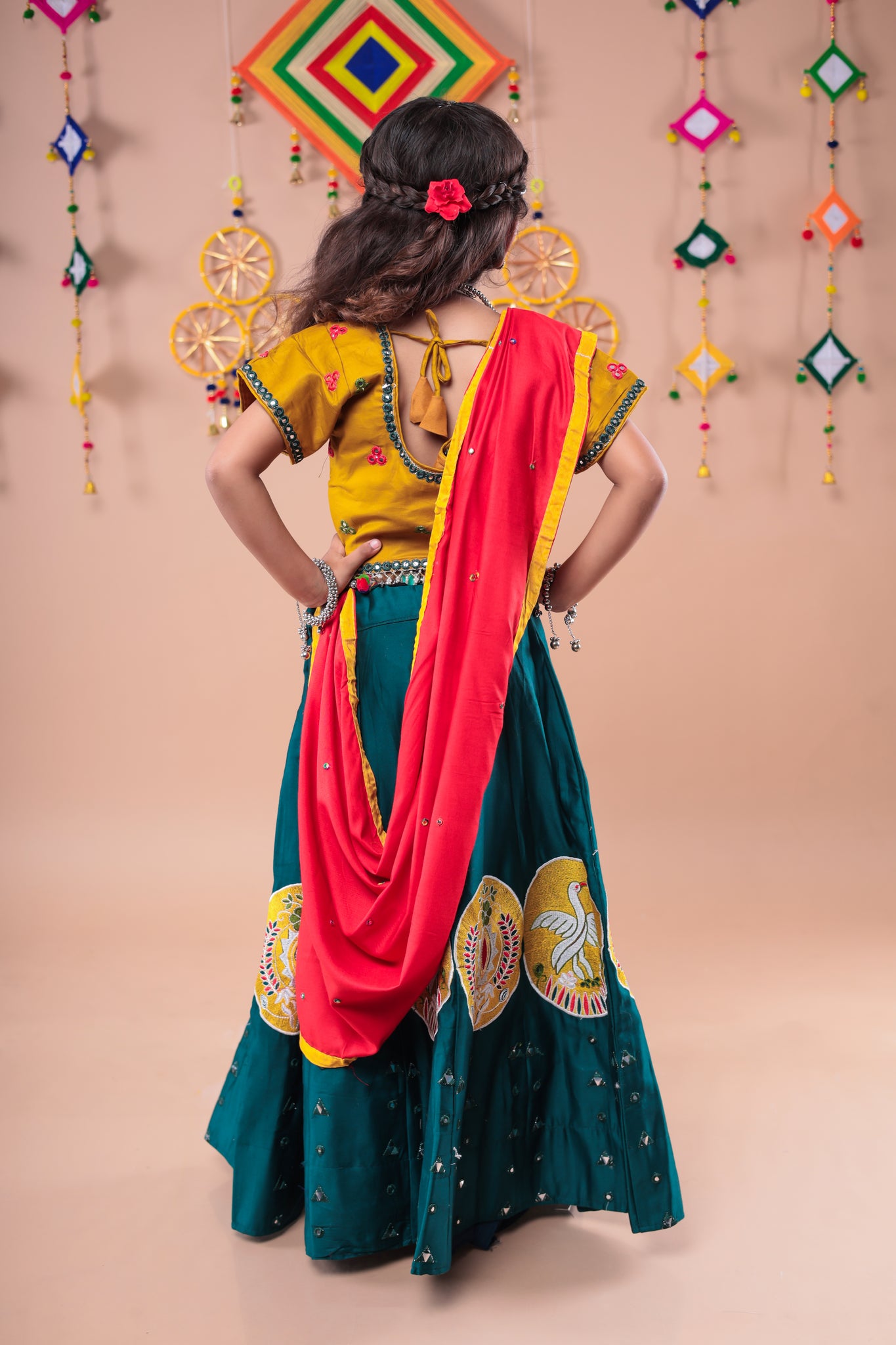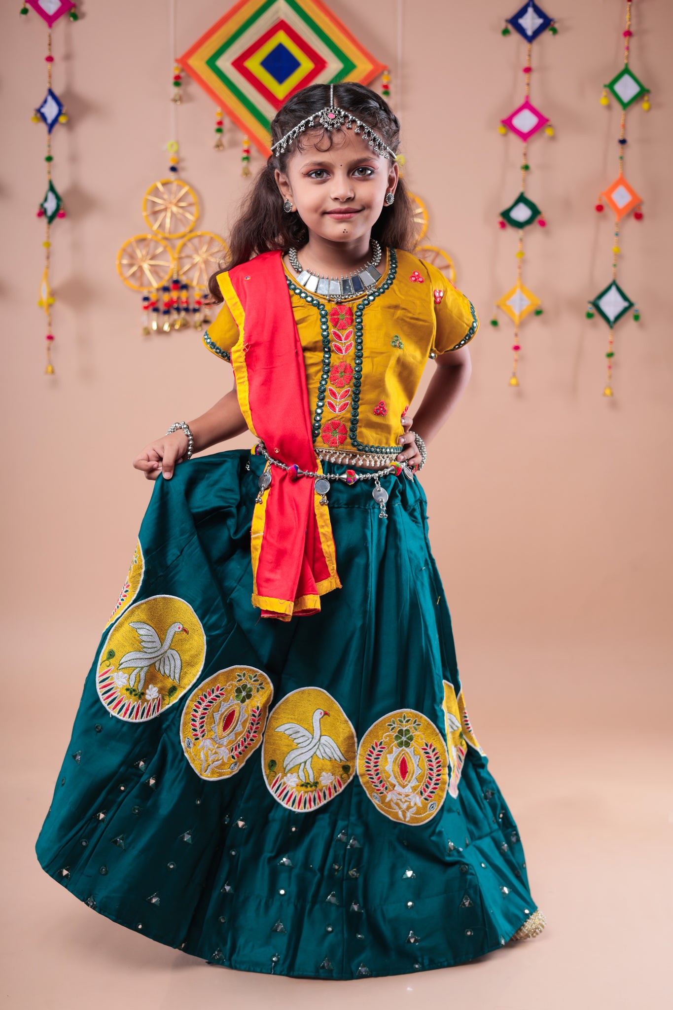 Banjara India Kutchi Embroidered Girls Chaniya Choli with Dupatta (CC-Bird)-Green