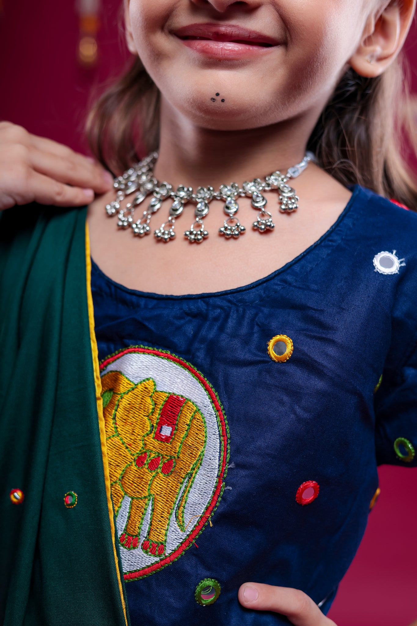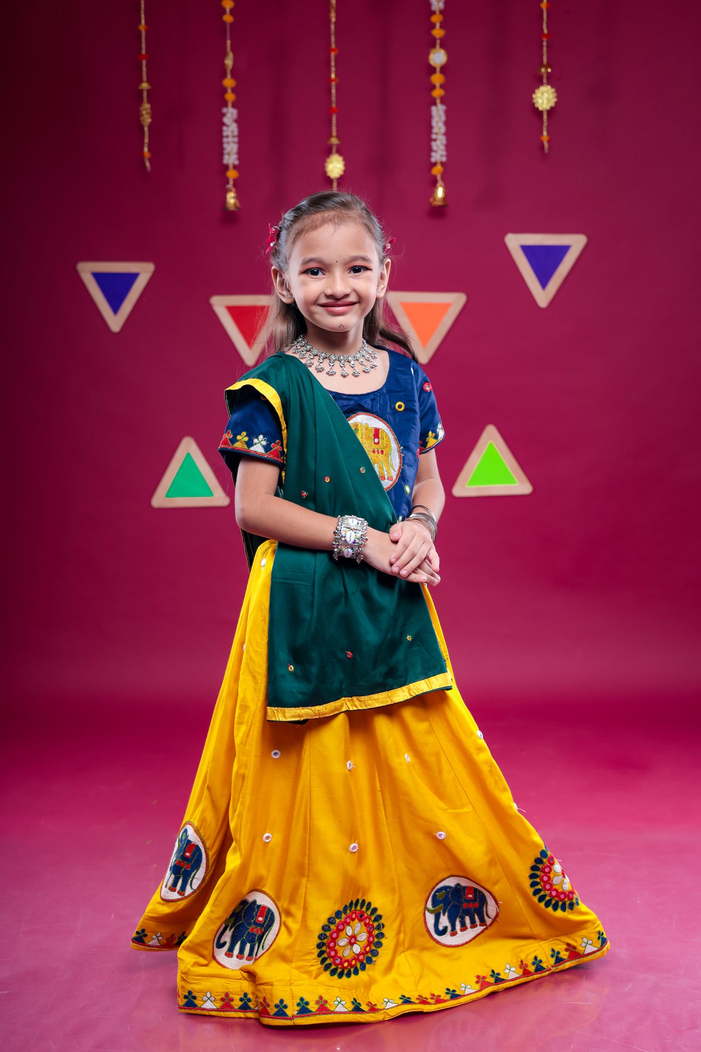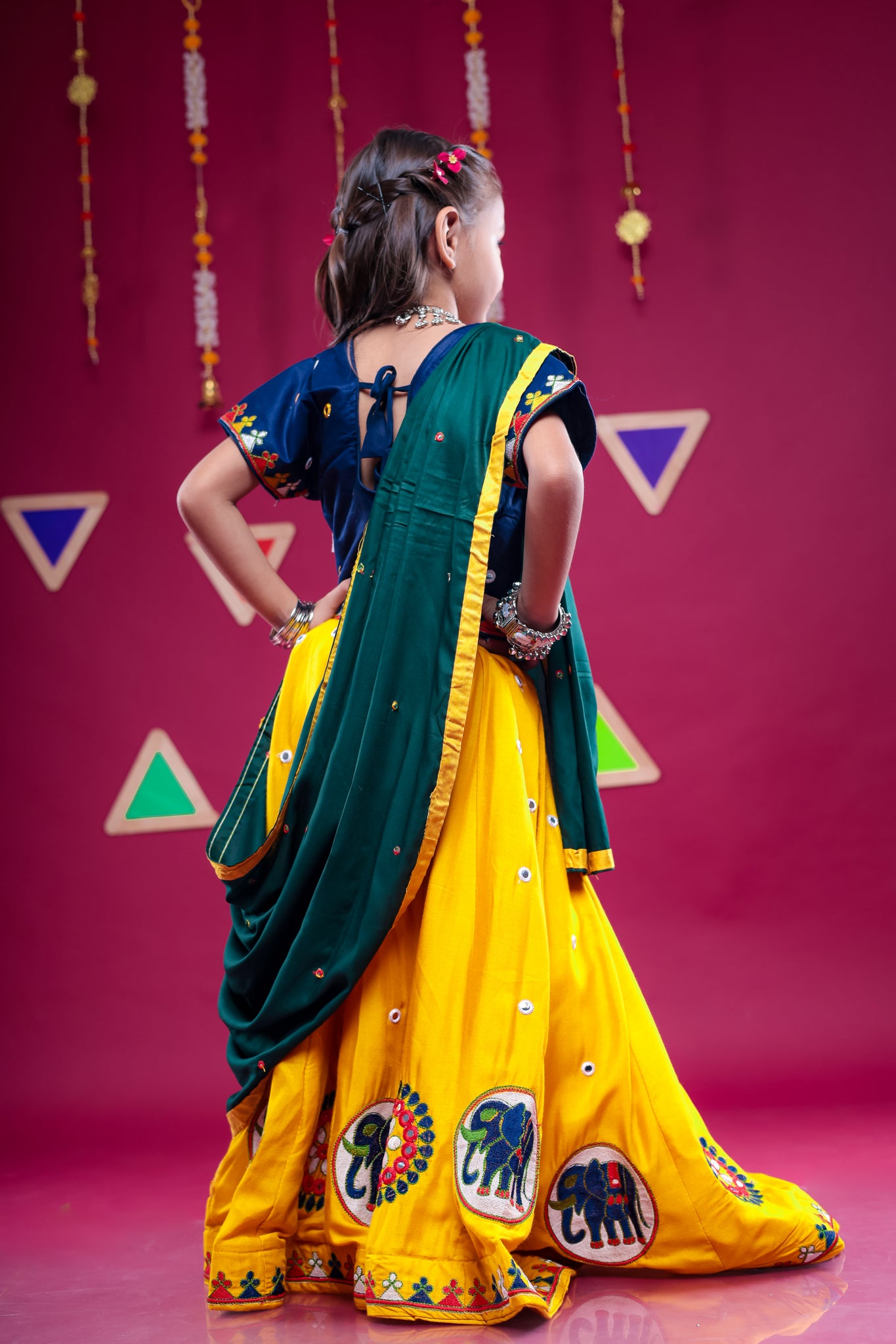 Banjara India Kutchi Embroidered Girls Chaniya Choli with Dupatta (CC-Flower)-Yellow