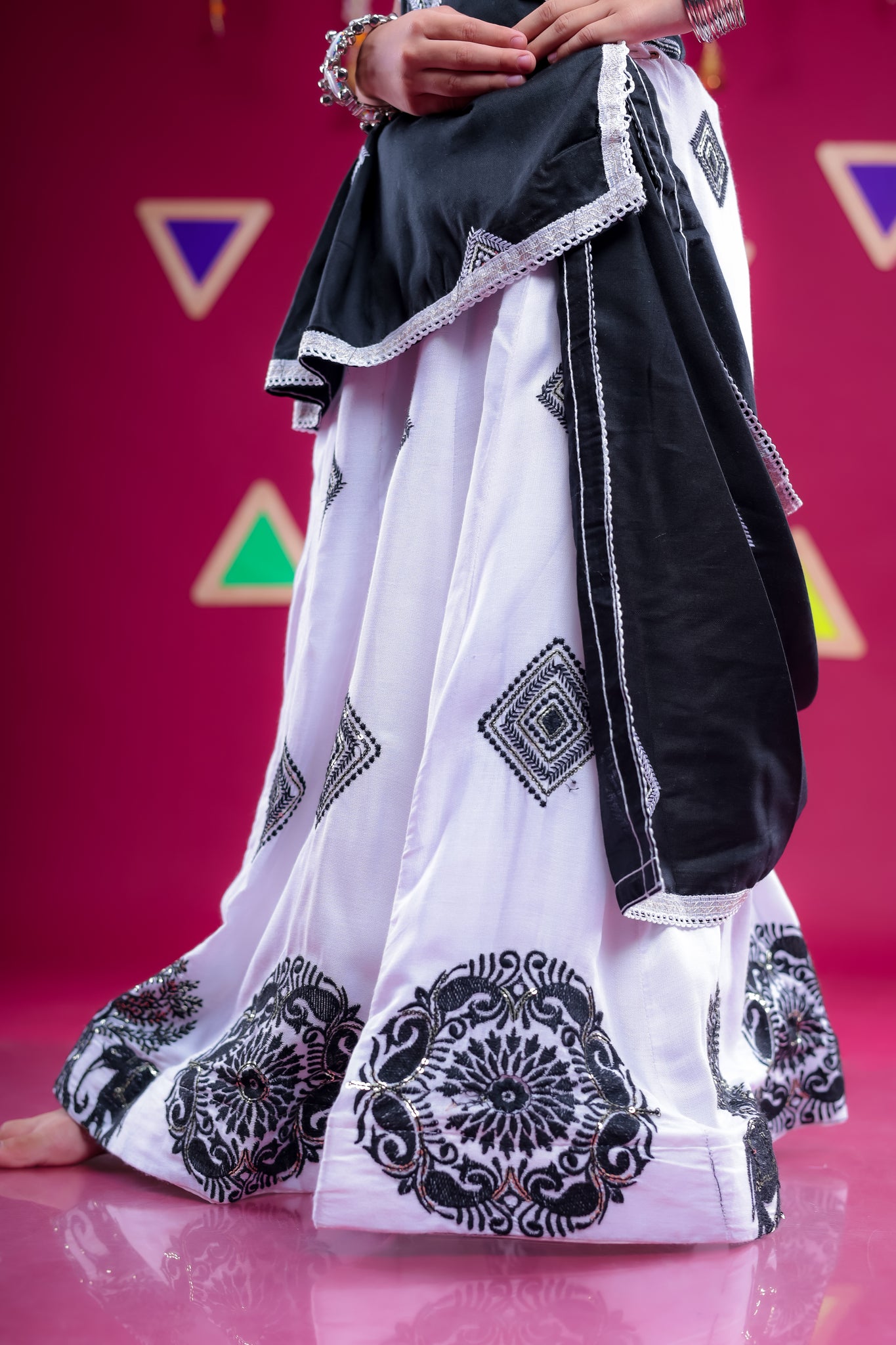 Banjara India Kutchi Embroidered Girls Chaniya Choli with Dupatta (CC-WHRK)-White