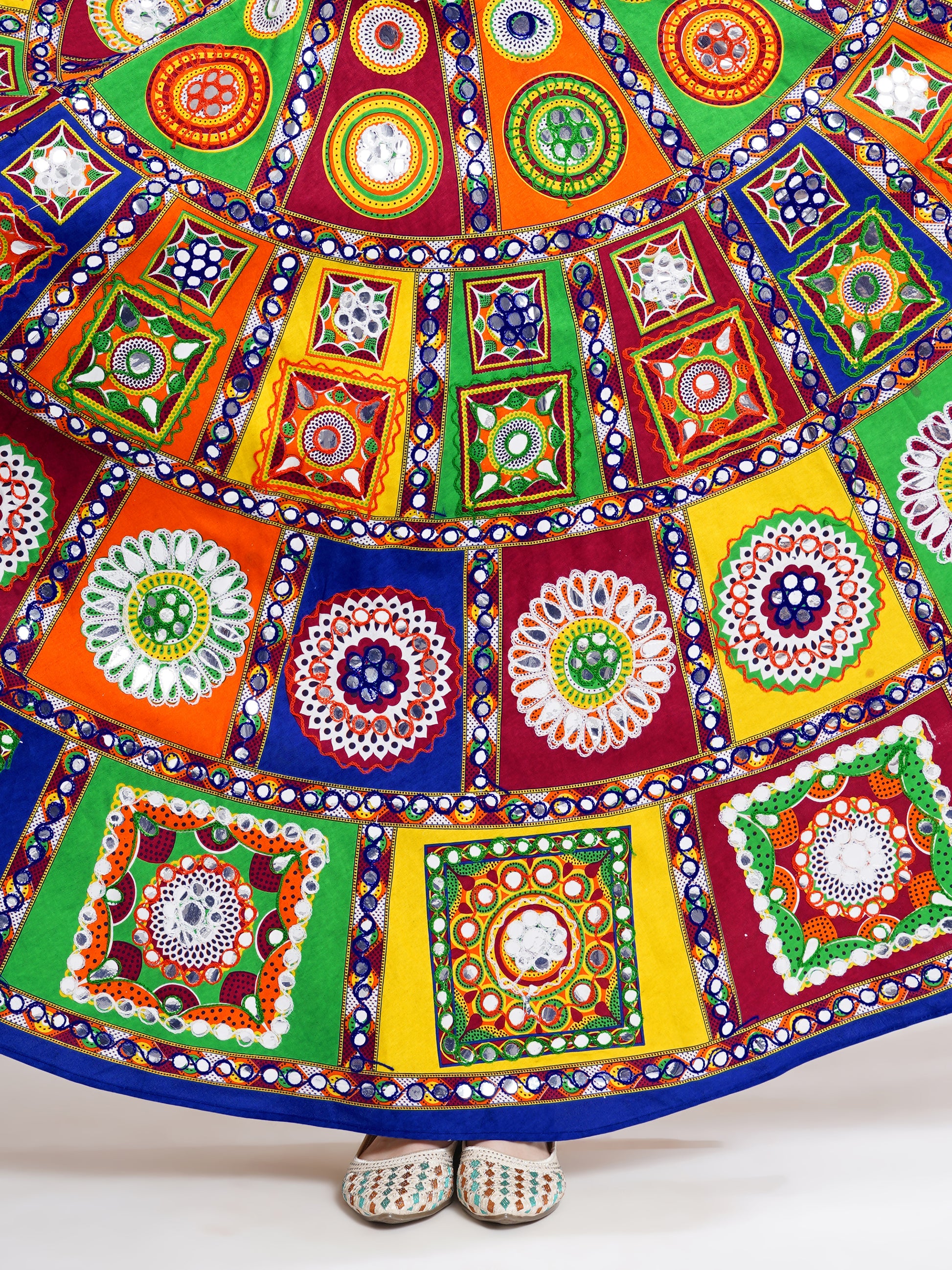 Banjara India Cotton Long Flair Aari Embroidery Kutch Work (Lehenga Choli) Chaniya Choli Set with Dupatta-(FSCC-Diamond)Blue