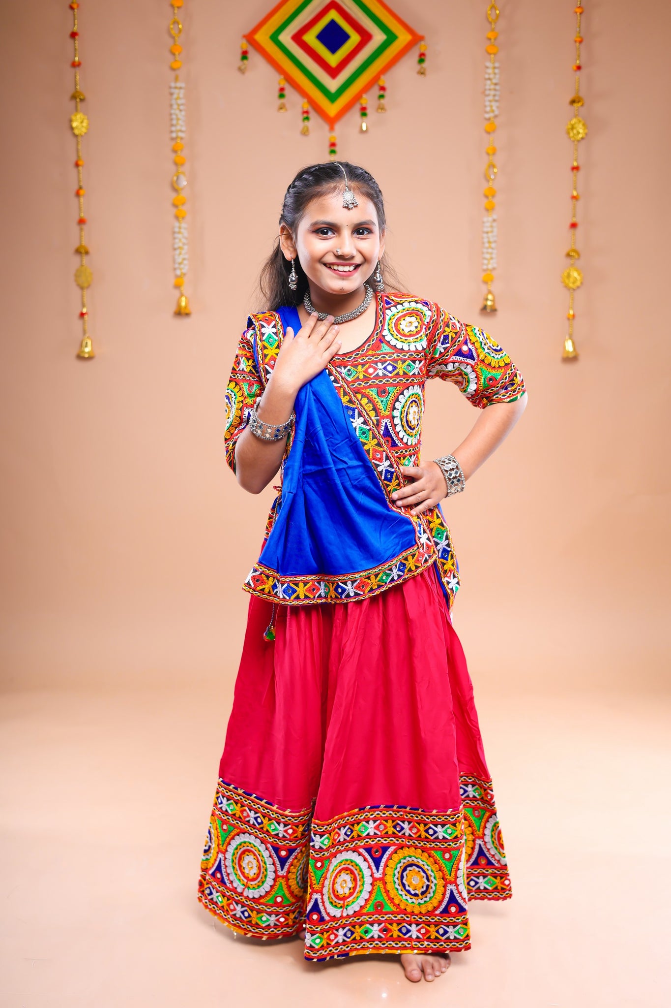 Banjara India's latest festive collection for young and cute girls, dress up this festival with our stylish chaniya choli and flaunt your fashion all around.  Comes in various size and colour options, embroidered multicolour designs on Viscose Rayon fabric.
