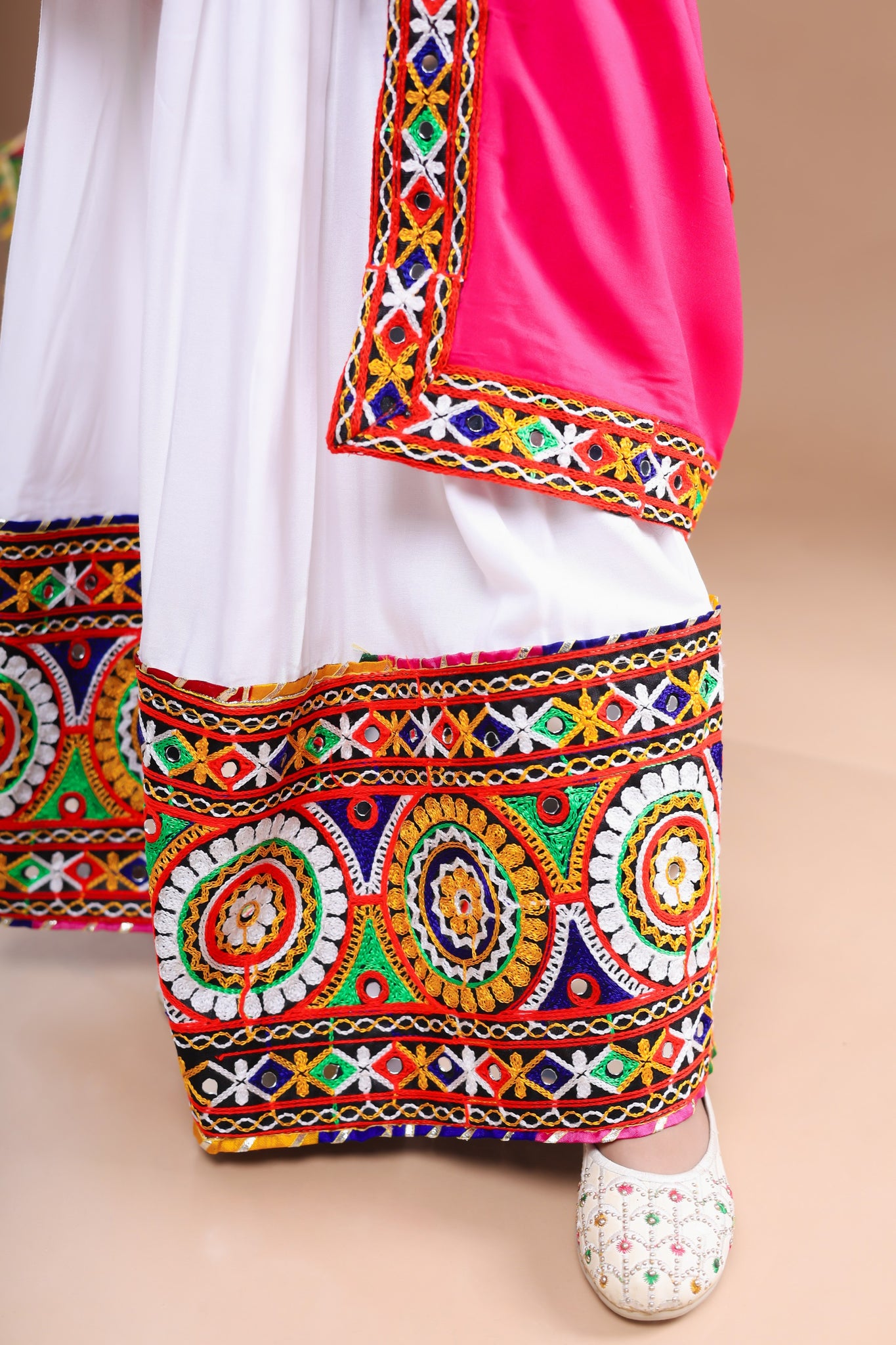 Banjara India Festive Wear Kutchwork Embroidered Girls Lehenga Choli Set with Dupatta (CC-CKKR) - White