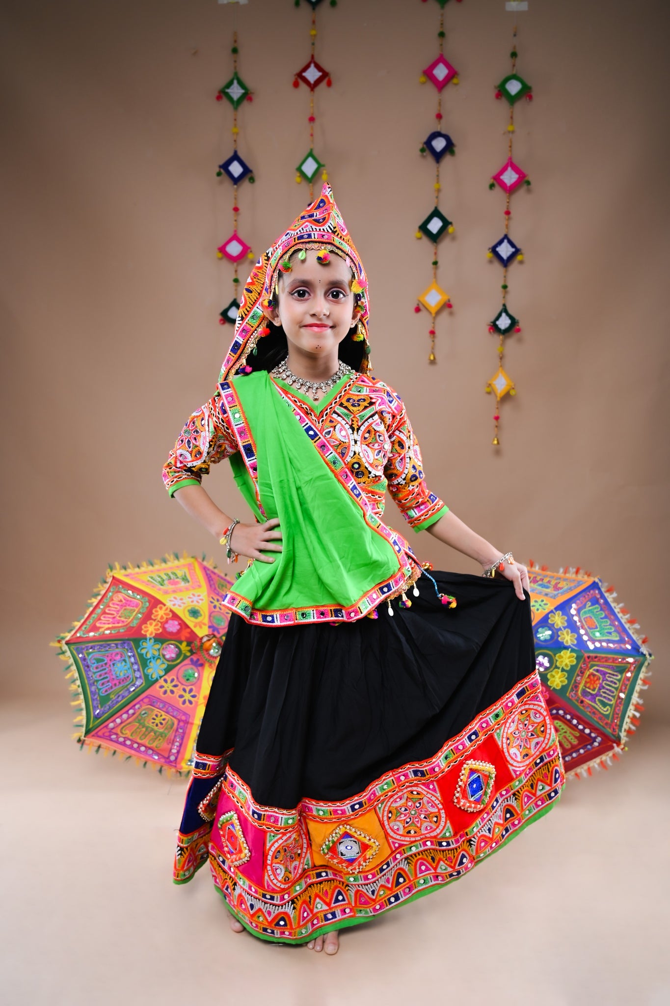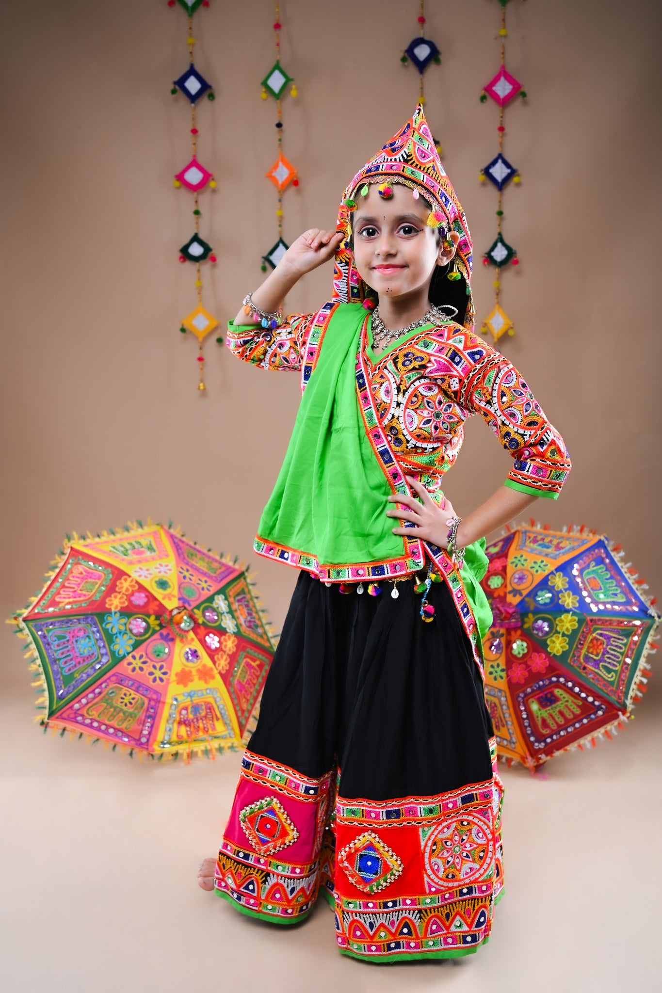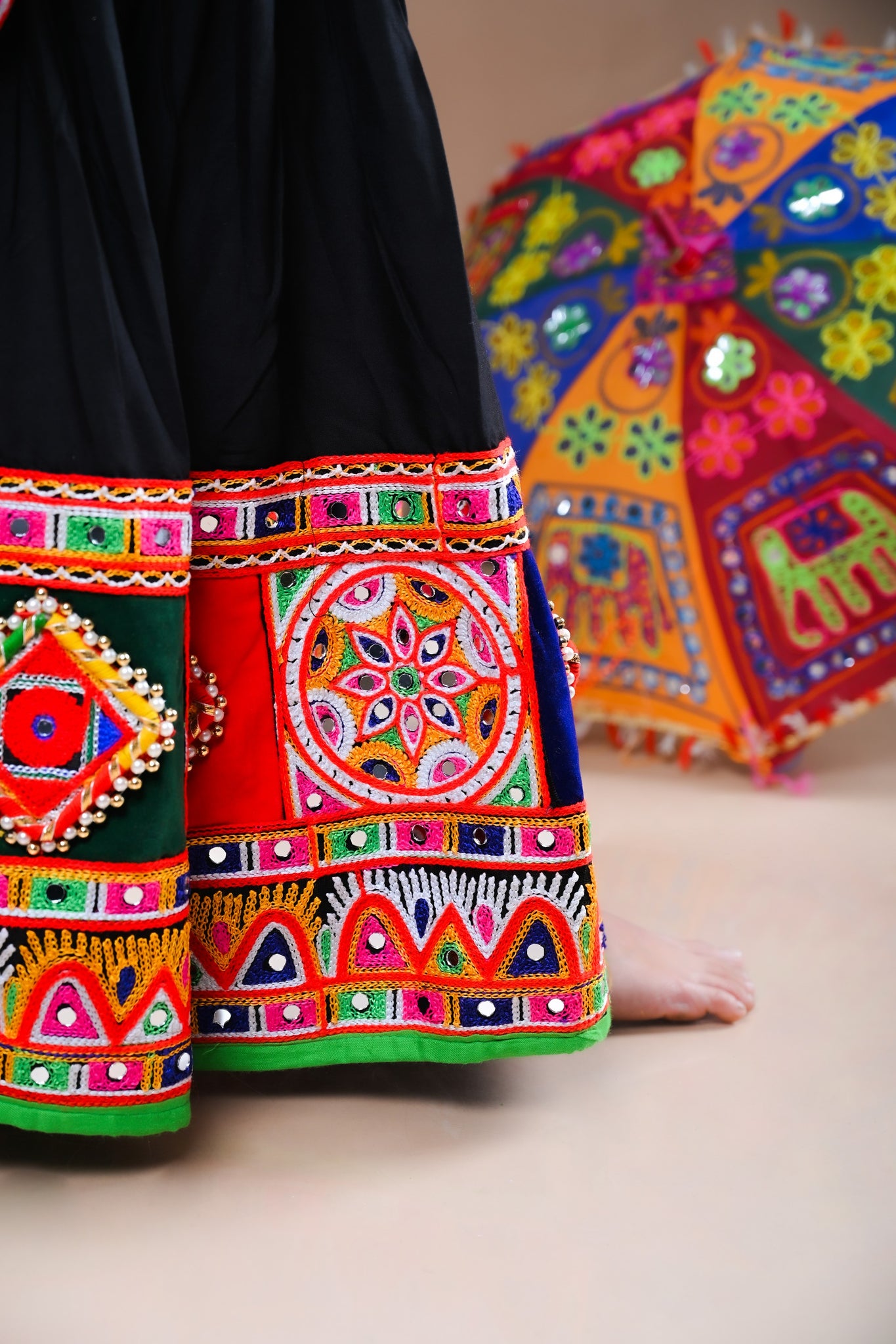 Imagine if you could be satisfied and content with your purchase. That can very much be your reality with the Banjara India Festive Wear Kutchwork Embroidered Girls Lehenga Choli Set with Dupatta (CC-JHMK) - Black.