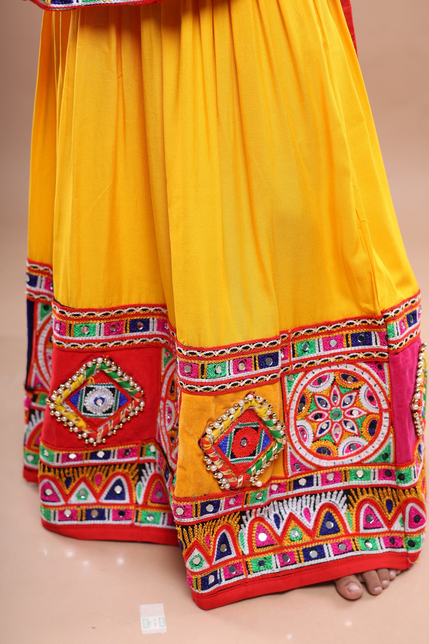 Banjara India Festive Wear Kutchwork Embroidered Girls Lehenga Choli Set with Dupatta (CC-JHMK) - Yellow