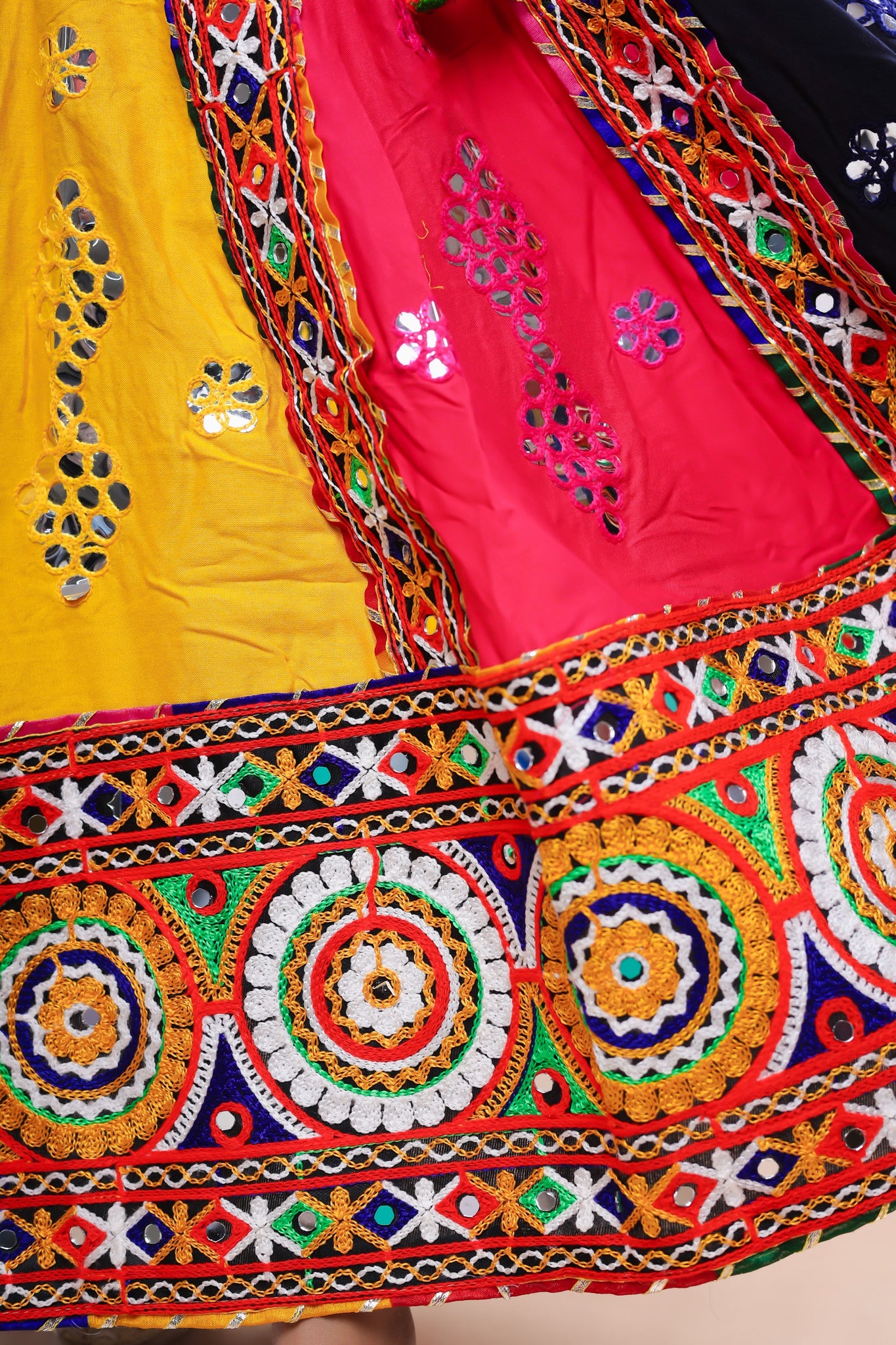 Life is too short to live without the Banjara India Festive Wear Kutchwork Embroidered Girls Lehenga Choli Set with Dupatta (CC-KJKL) - Yellow. Be happy. Be Content. Be Satisfied.