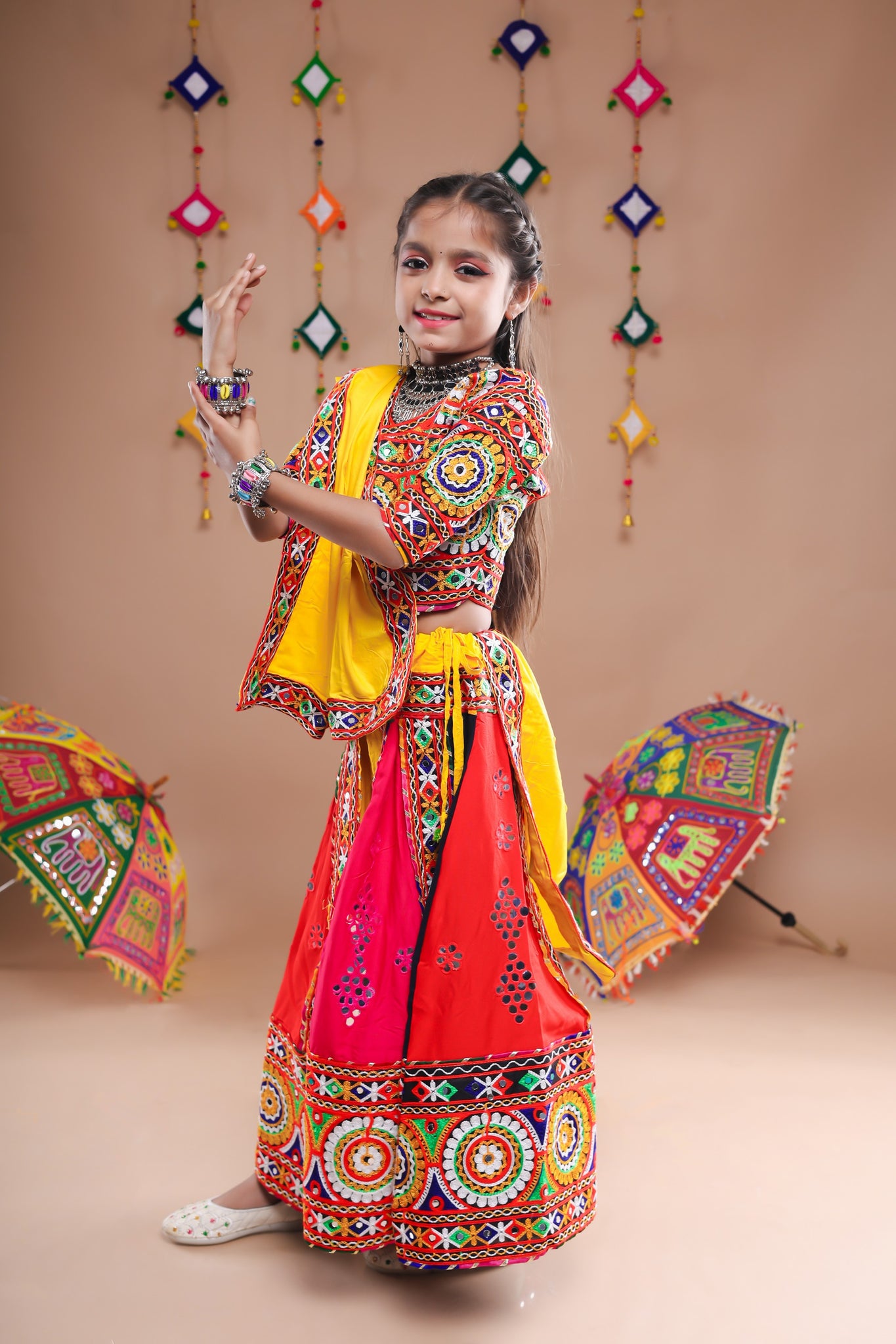 Banjara India's latest festive collection for young and cute girls, dress up this festival with our stylish chaniya choli and flaunt your fashion all around. Comes in various size and colour options, embroidered multicolour designs on Viscose Rayon fabric.