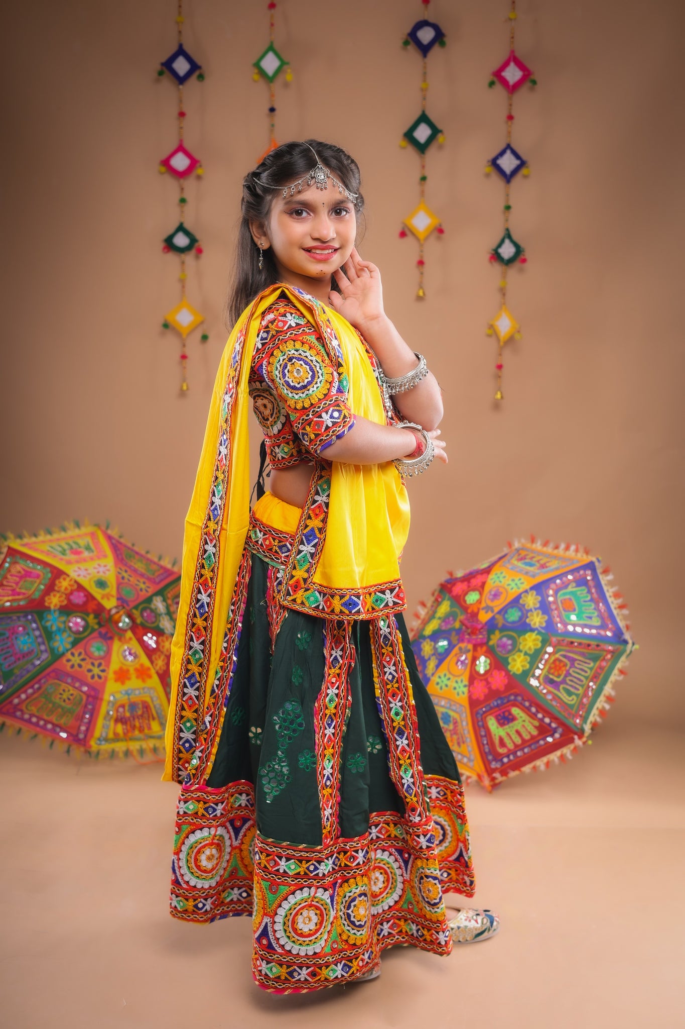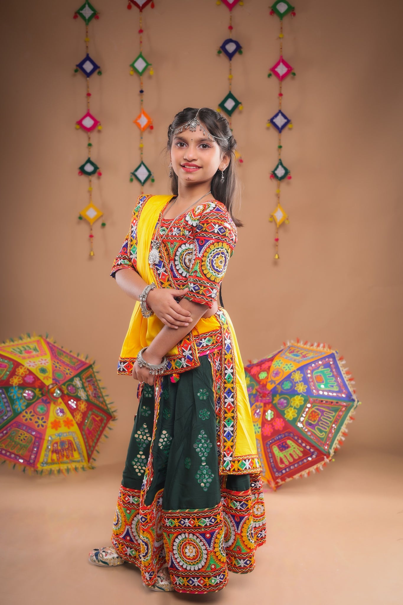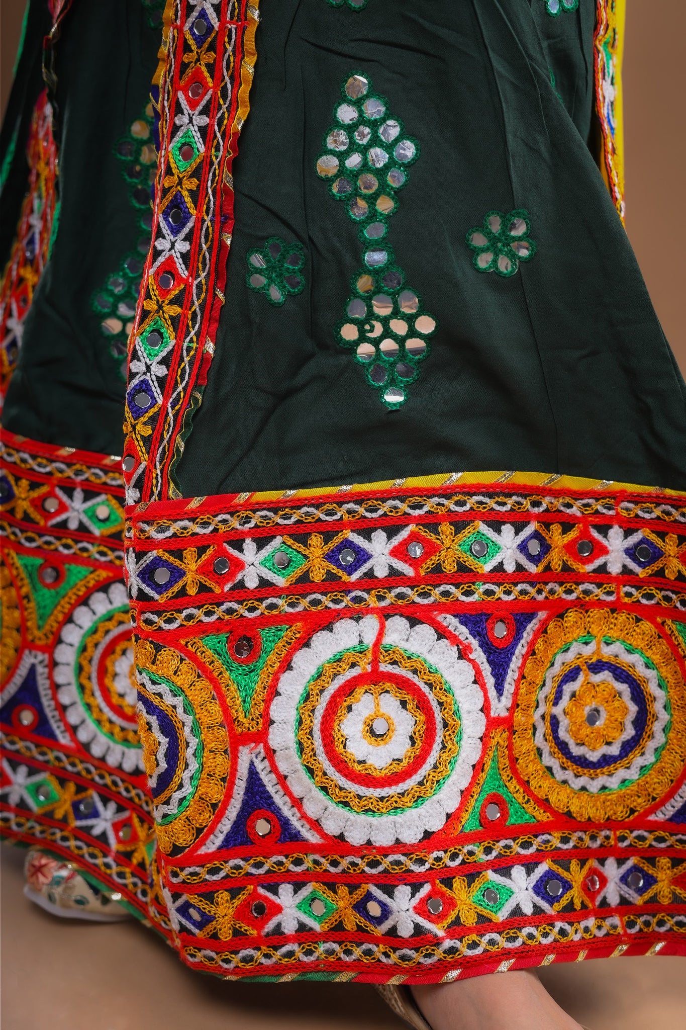 Banjara India Festive Wear Kutchwork Embroidered Girls Lehenga Choli Set with Dupatta (CC-SCKK) - Green