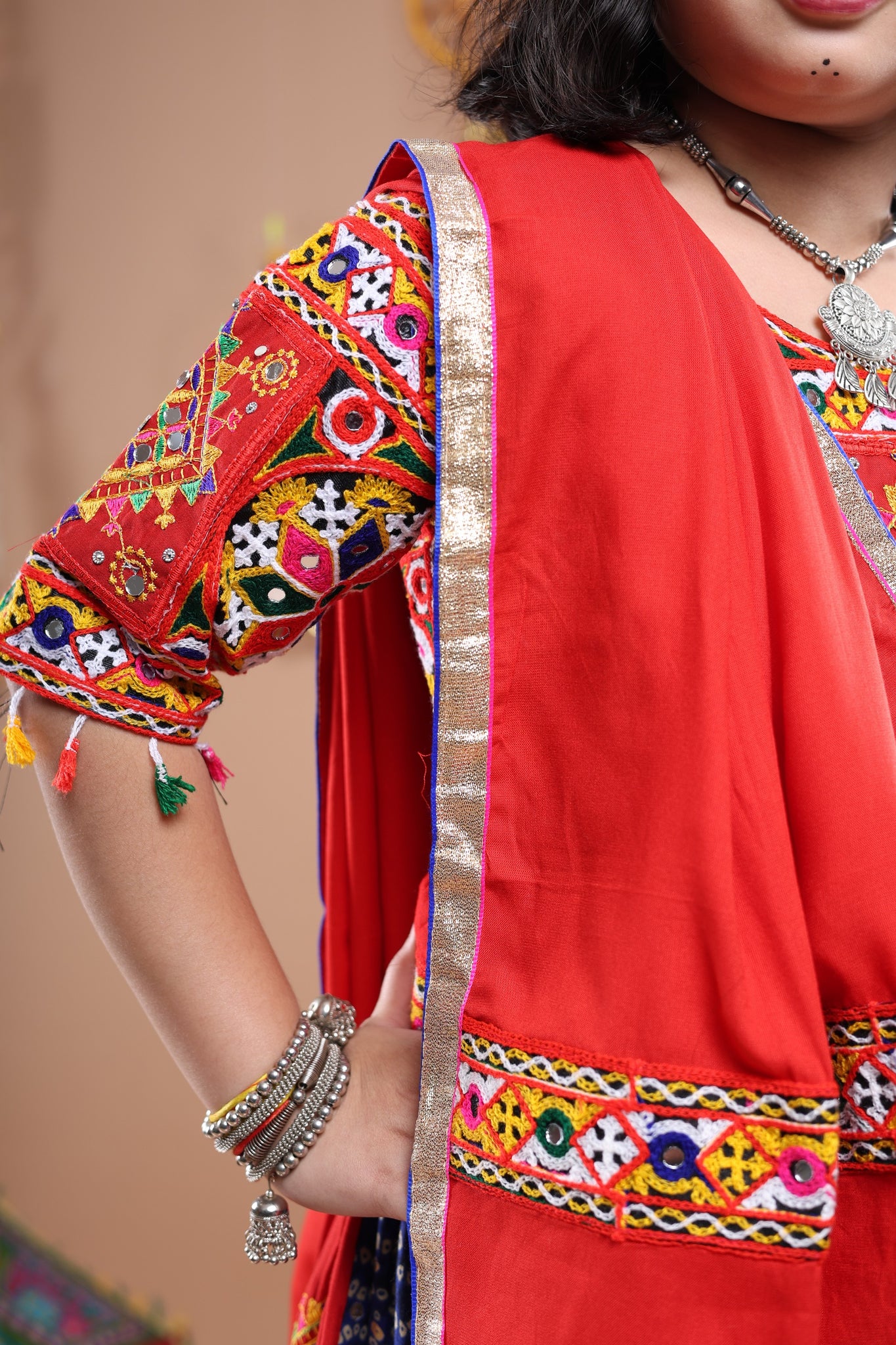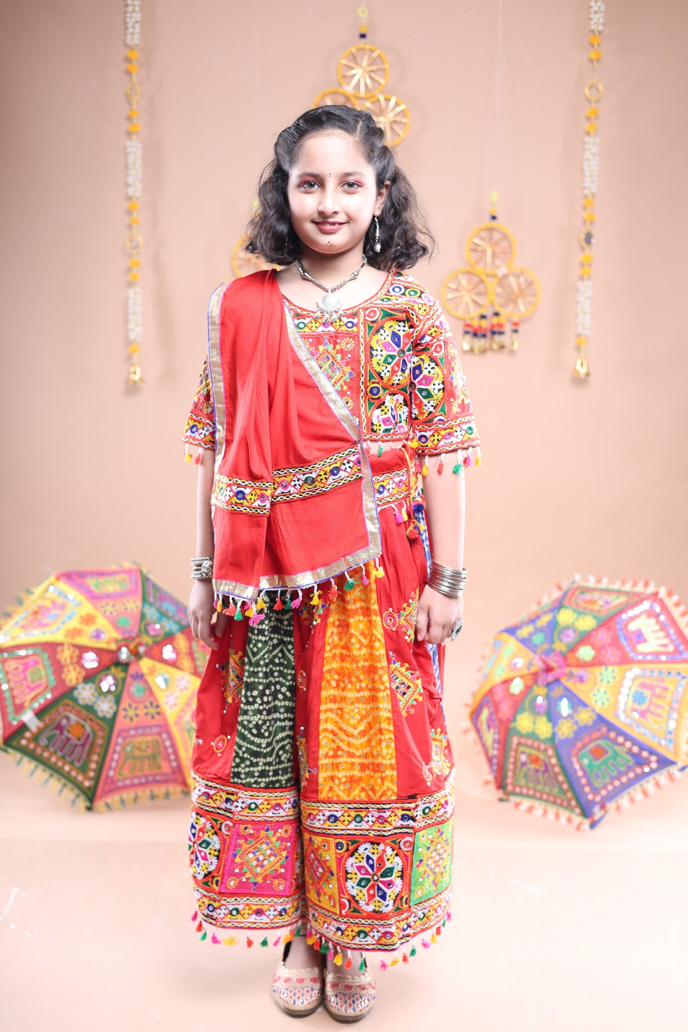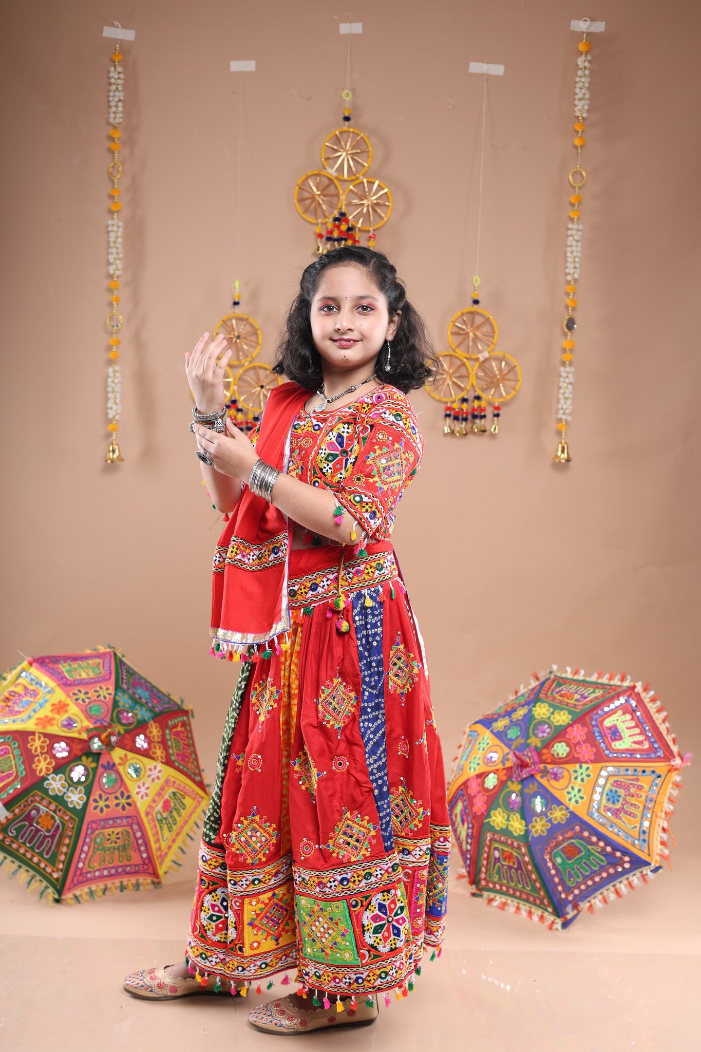 Banjara India Festive Wear Kutchwork Embroidered Girls Lehenga Choli Set with Dupatta (CC-SNDO) - Pink
