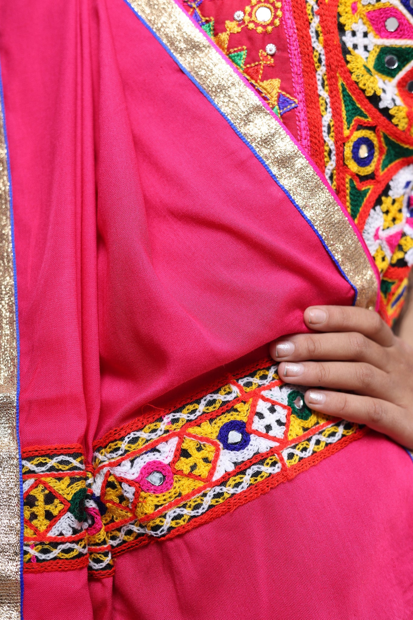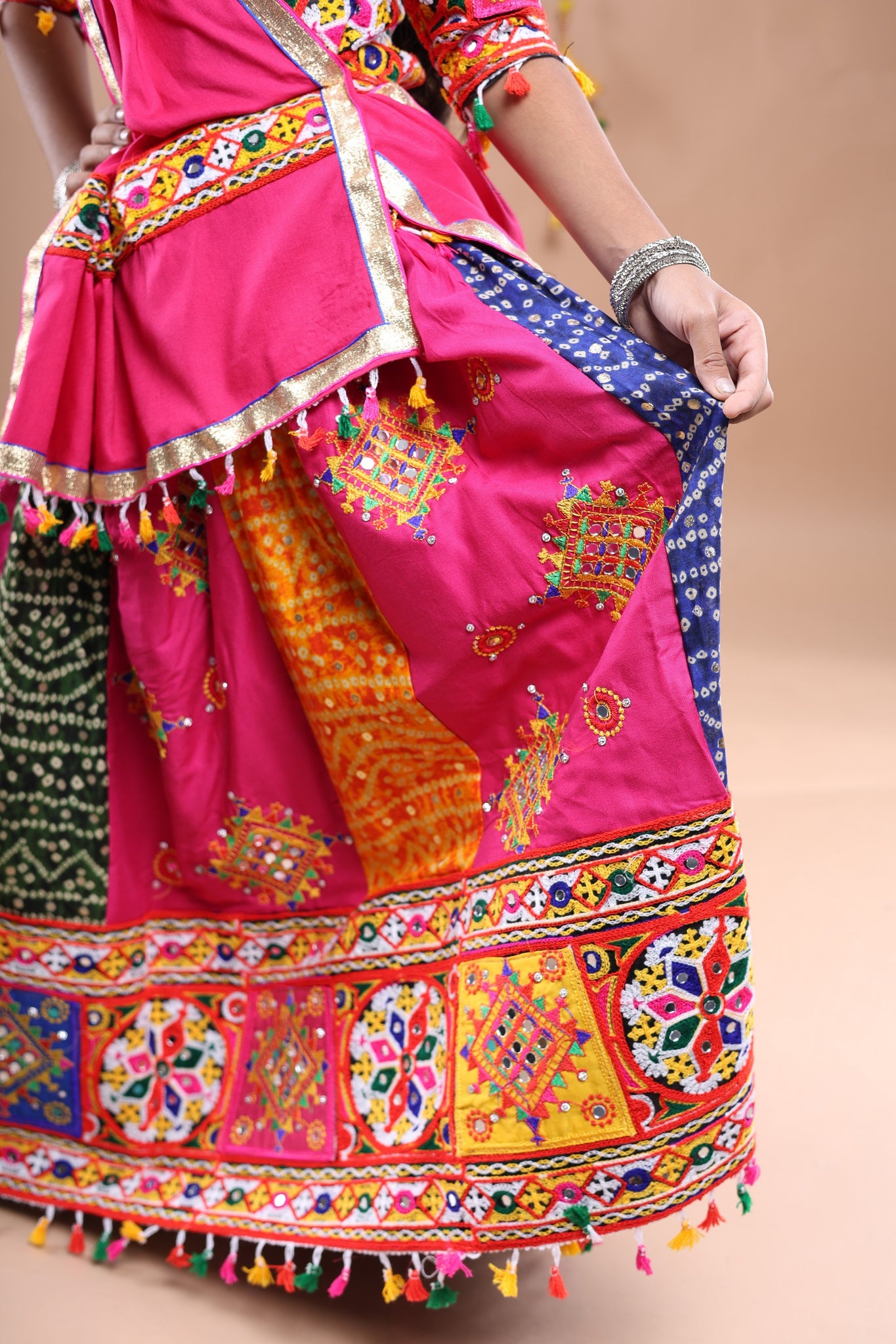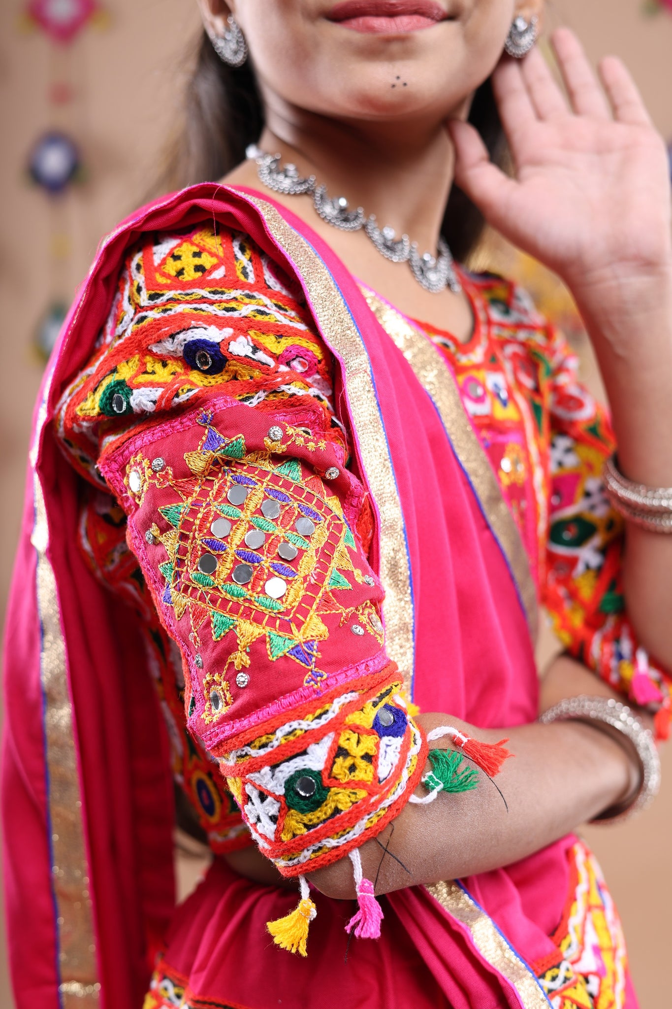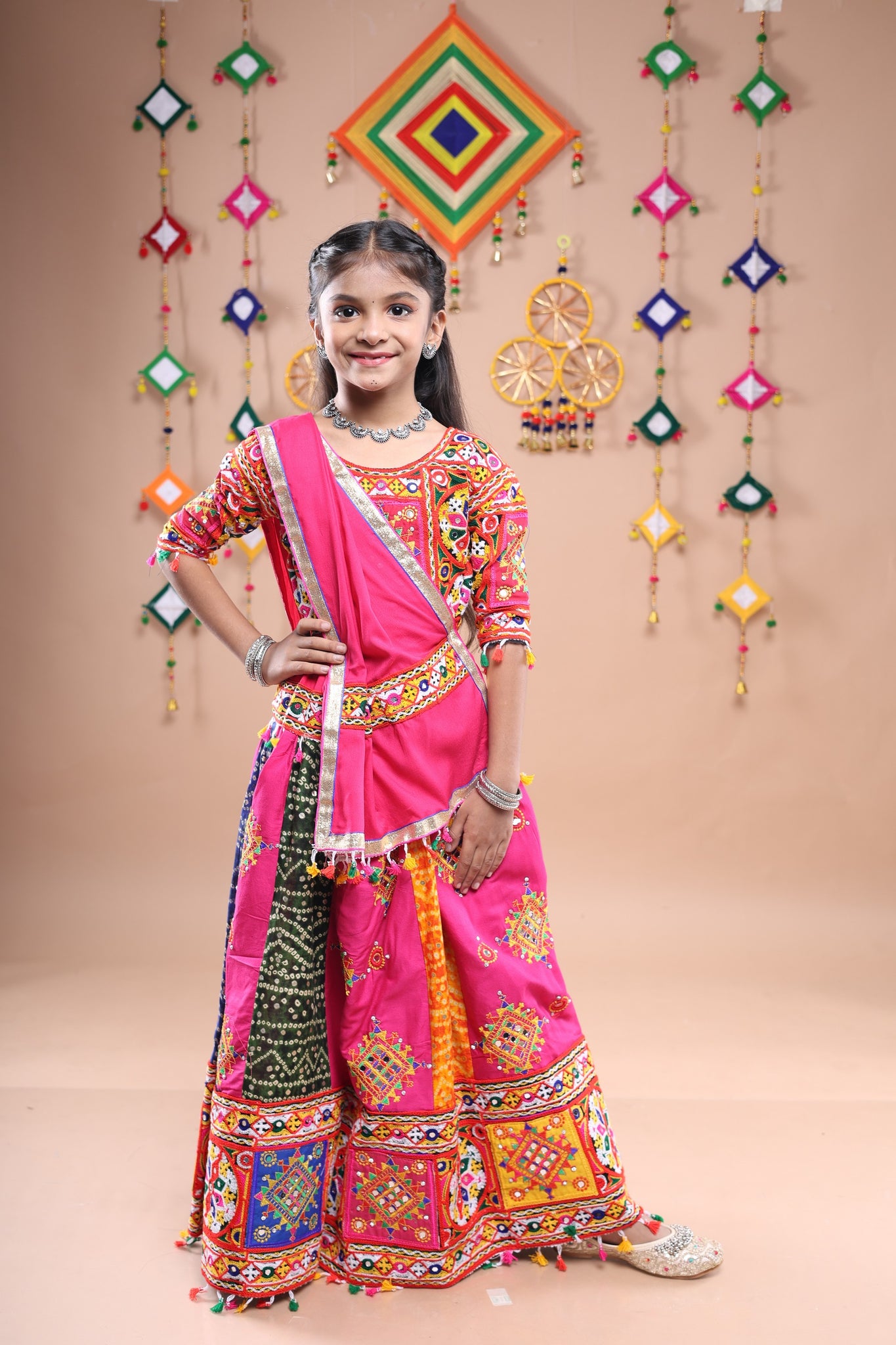 The Banjara India Festive Wear Kutchwork Embroidered Girls Lehenga Choli Set with Dupatta (CC-SNDO) - Red is the yin, to your yang. You've found what you're looking for.