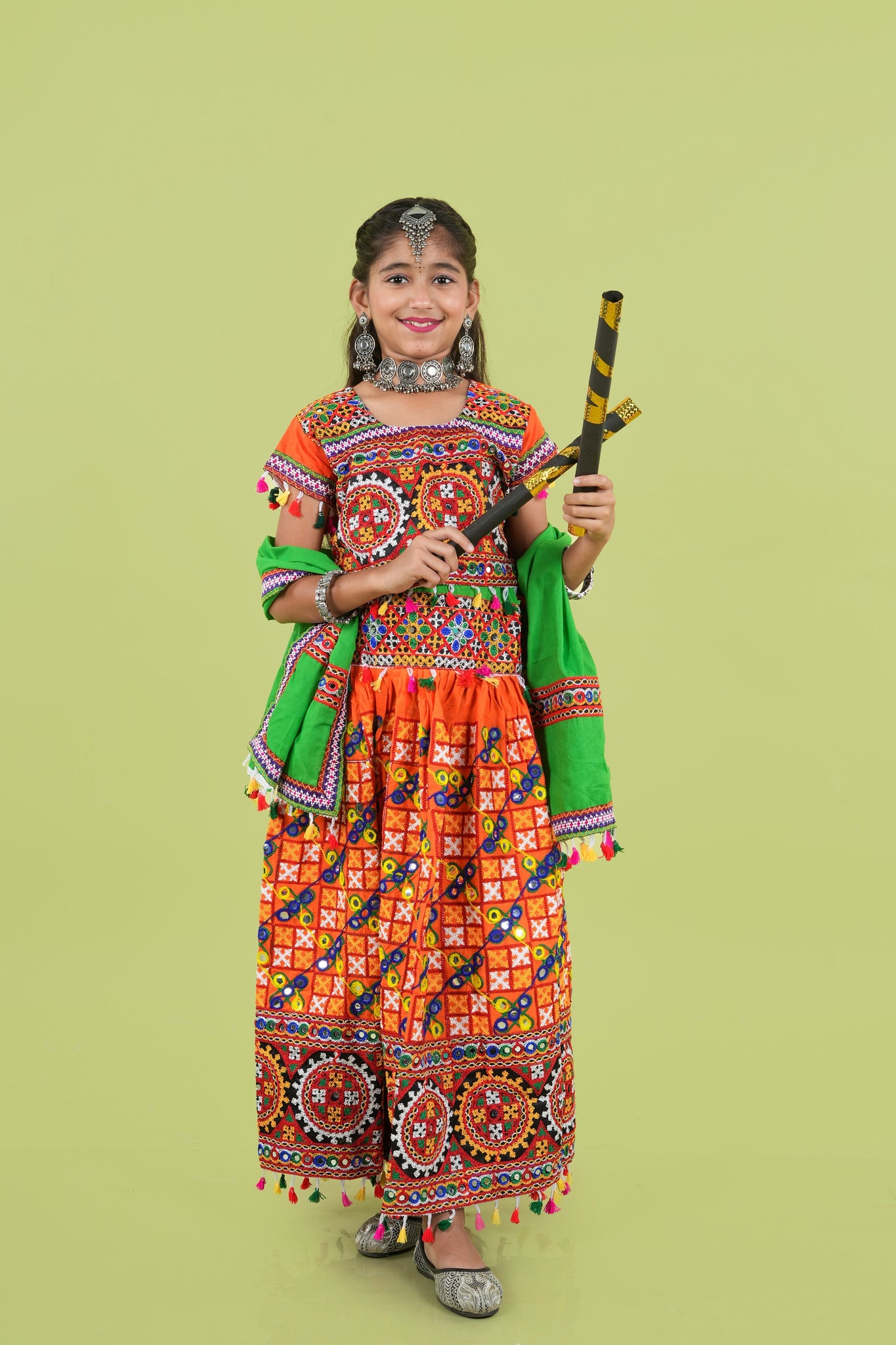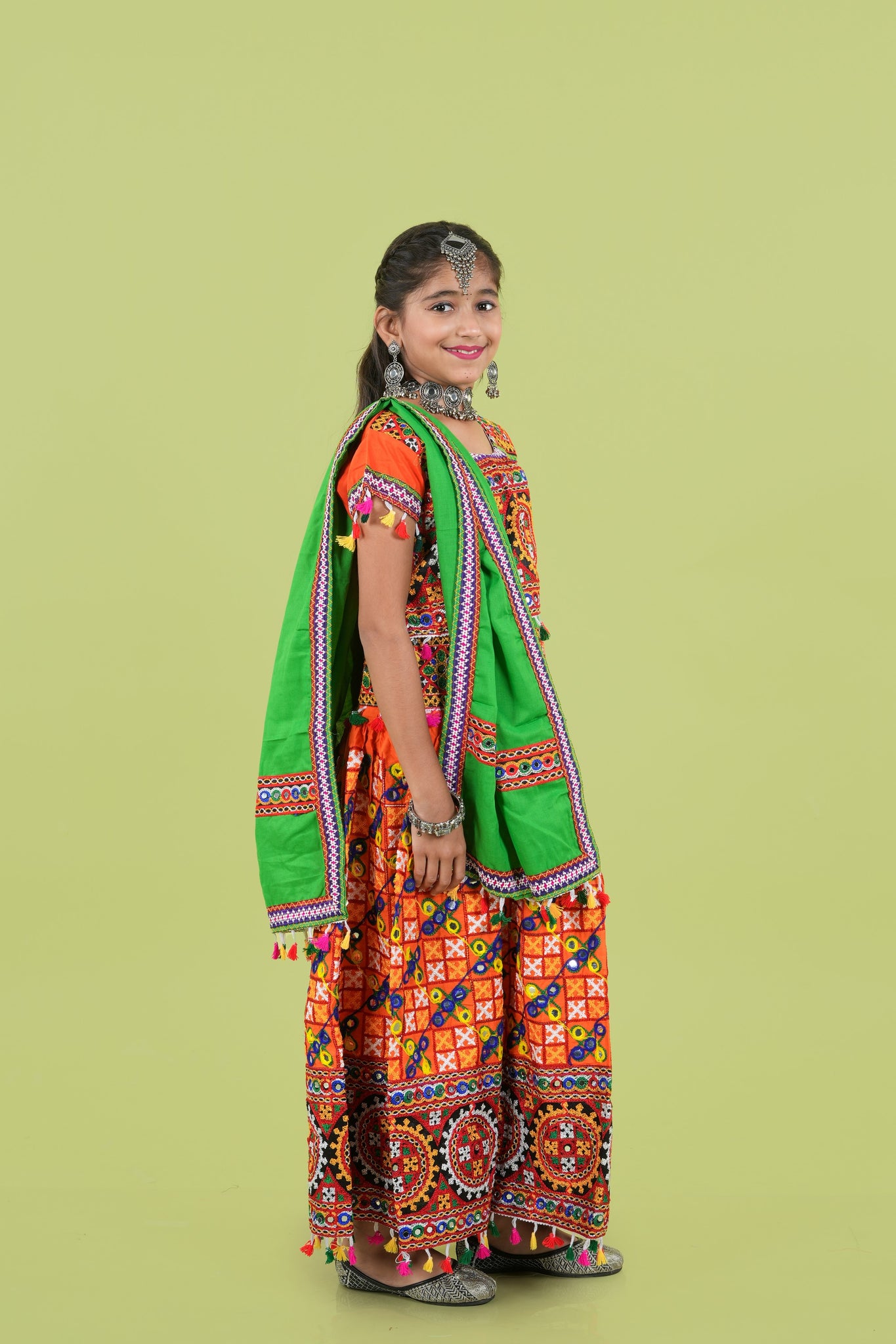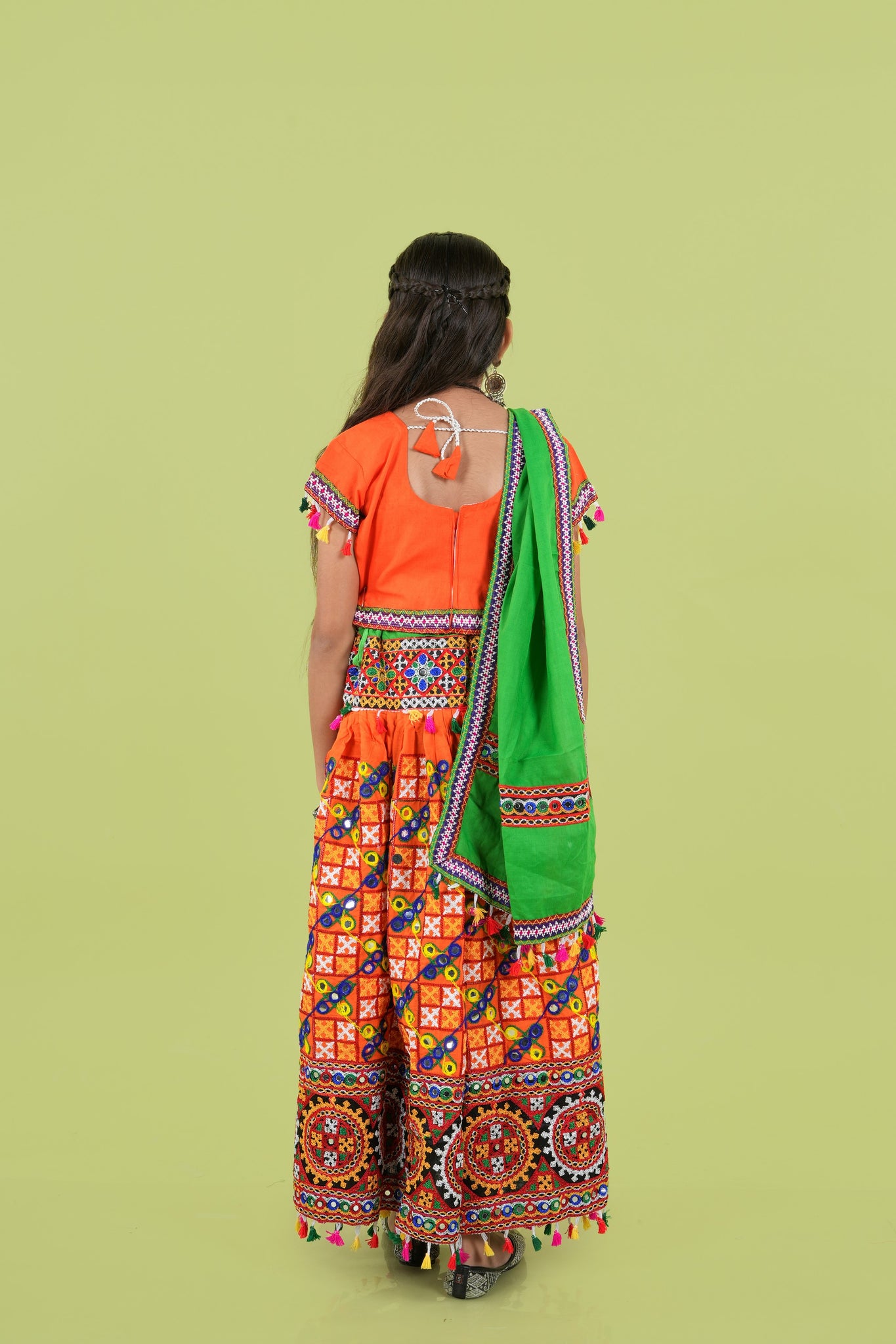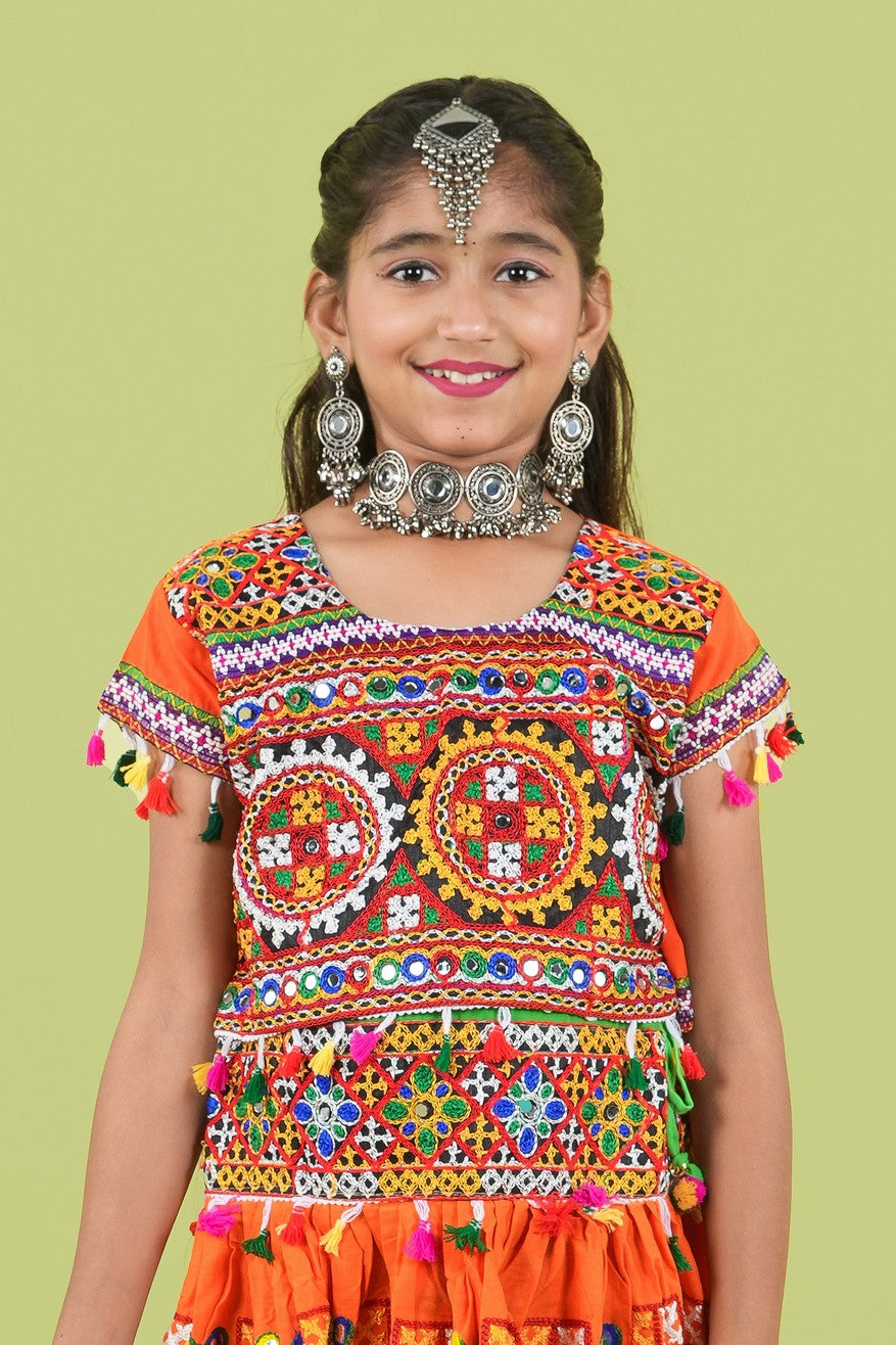 Banjara India Kutchi Embroidered Girls Chaniya Choli with Dupatta (KCC-BWR) - Orange